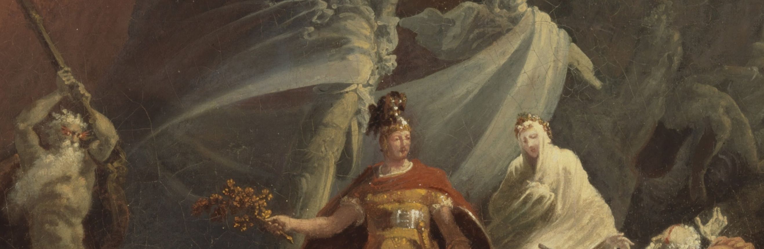 Virgil’s epic poem begins with Aeneas fleeing the ruins of Troy with his father Anchises and his young son Ascanius, with a plan to make a home in Italy. Because of a prophecy foretelling that the descendants of Aeneas will one day destroy Carthage, Juno’s favorite city, Juno orders the god of the winds to unleash a terrible storm. The ships are thrown off course and arrive at an African port. As Aeneas makes his way towards his new home he encounters Dido, Carthage’s queen, and falls deeply in love.